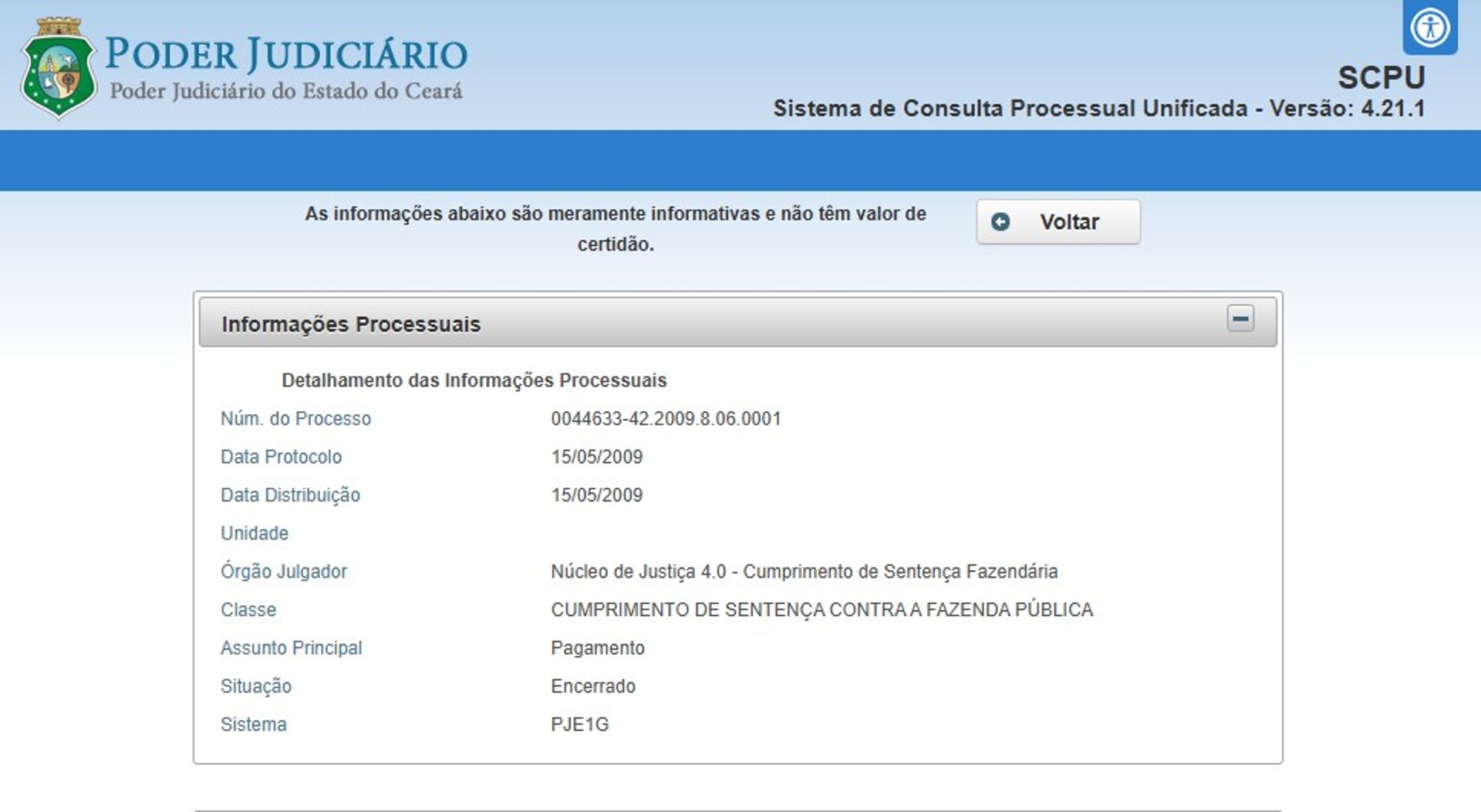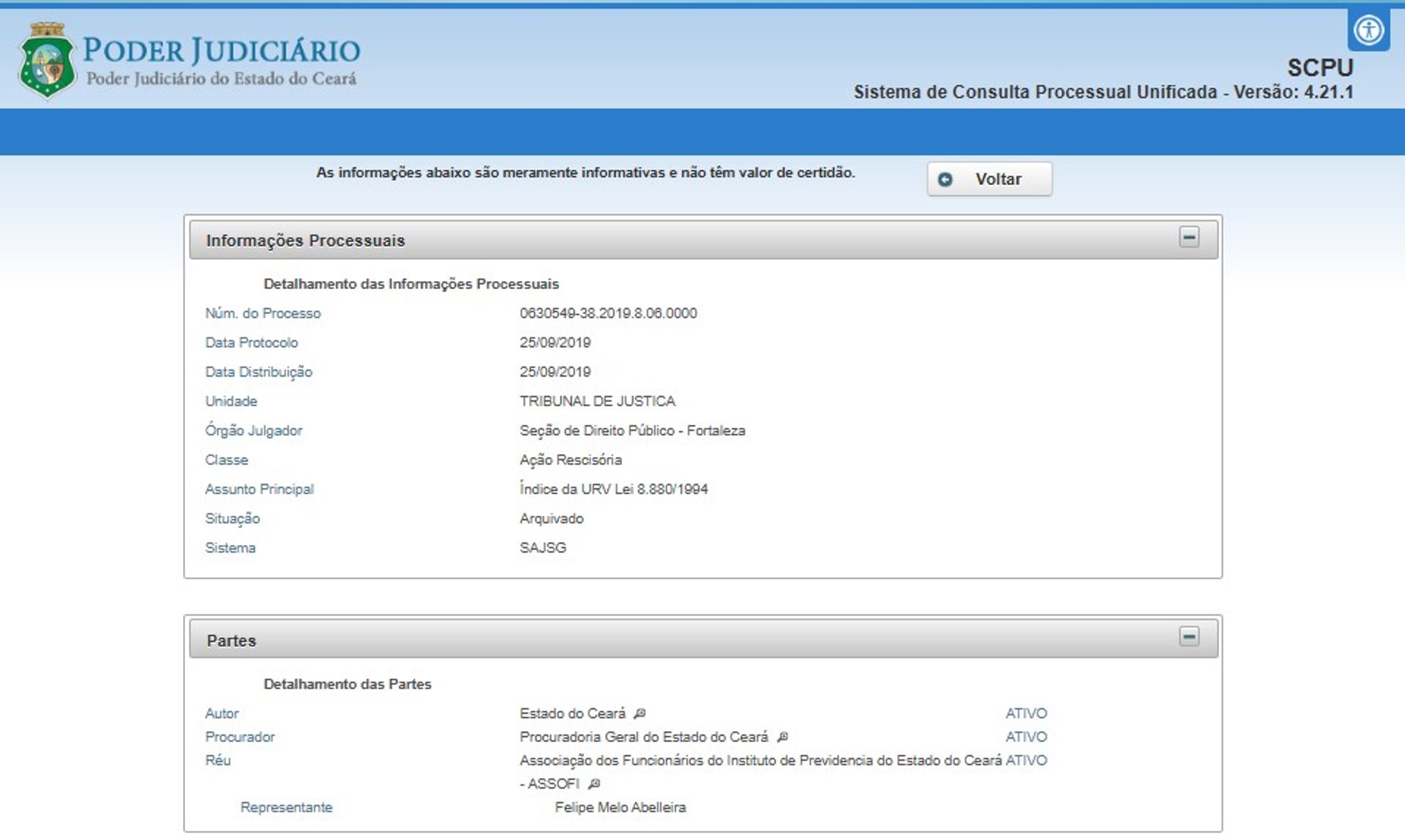 Ação Judicial 0044633-42.2009.8.06.0001 Tramitou nas três instâncias judiciais competentes com ganho para os associados, no entanto, a Procuradoria do Estado do Ceará - PGE CE, que teve ampla defesa protela a decisão mediante recurso apelatório.